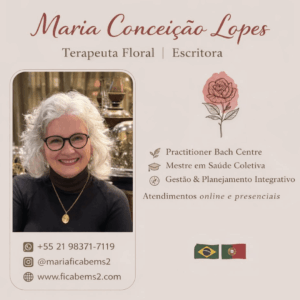Com ampla trajetória como escritora, terapeuta floral e practitioner certificada pelo Bach Centre, Maria Conceição Lopes vem ajudando inúmeras pessoas a encontrar equilíbrio emocional e bem-estar por meio das terapias naturais.